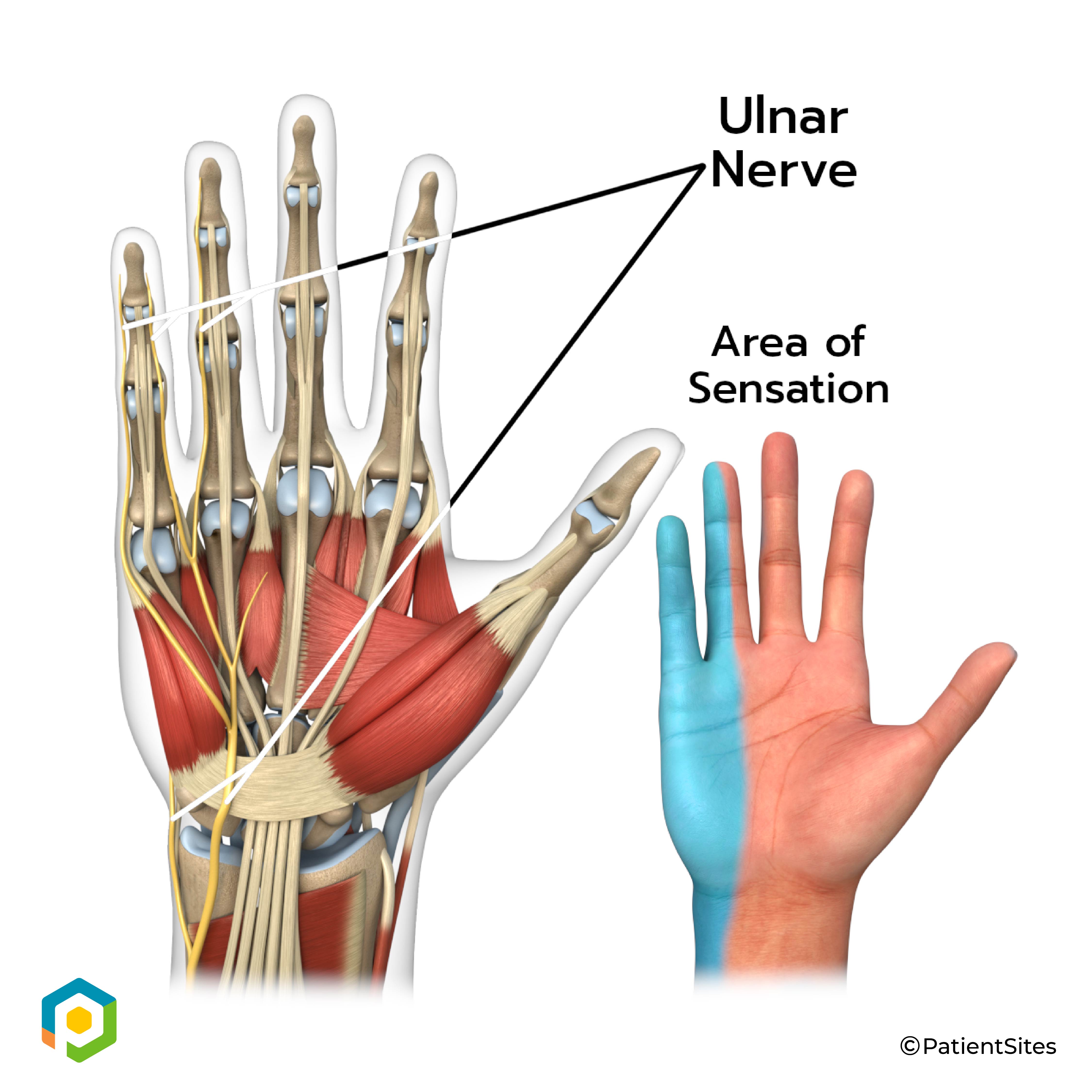 All of the nerves that travel to the hand cross the wrist. Three main nerves begin together at the shoulder: the radial nerve, the median nerve, and the ulnar nerve. These nerves carry signals from the brain to the muscles that move the arm, hand, fingers, and thumb. The nerves also carry signals back to the brain about sensations such as touch, pain, and temperature.